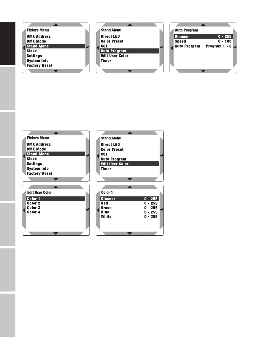 Select Stand Alone, confirm the selection, then select Edit User Color and confirm again. Select