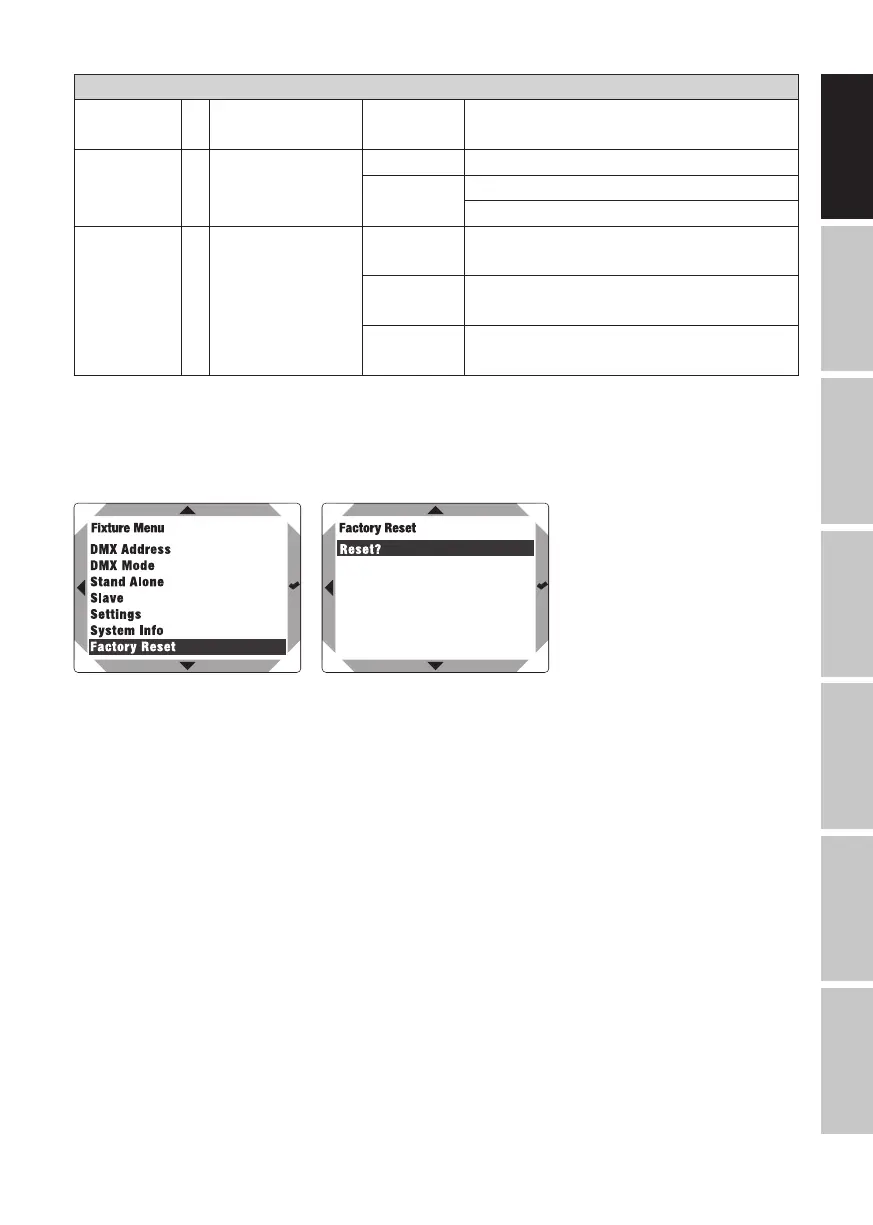 To reset the headlamp to factory settings, select Factory Reset and confirm. Start the reset