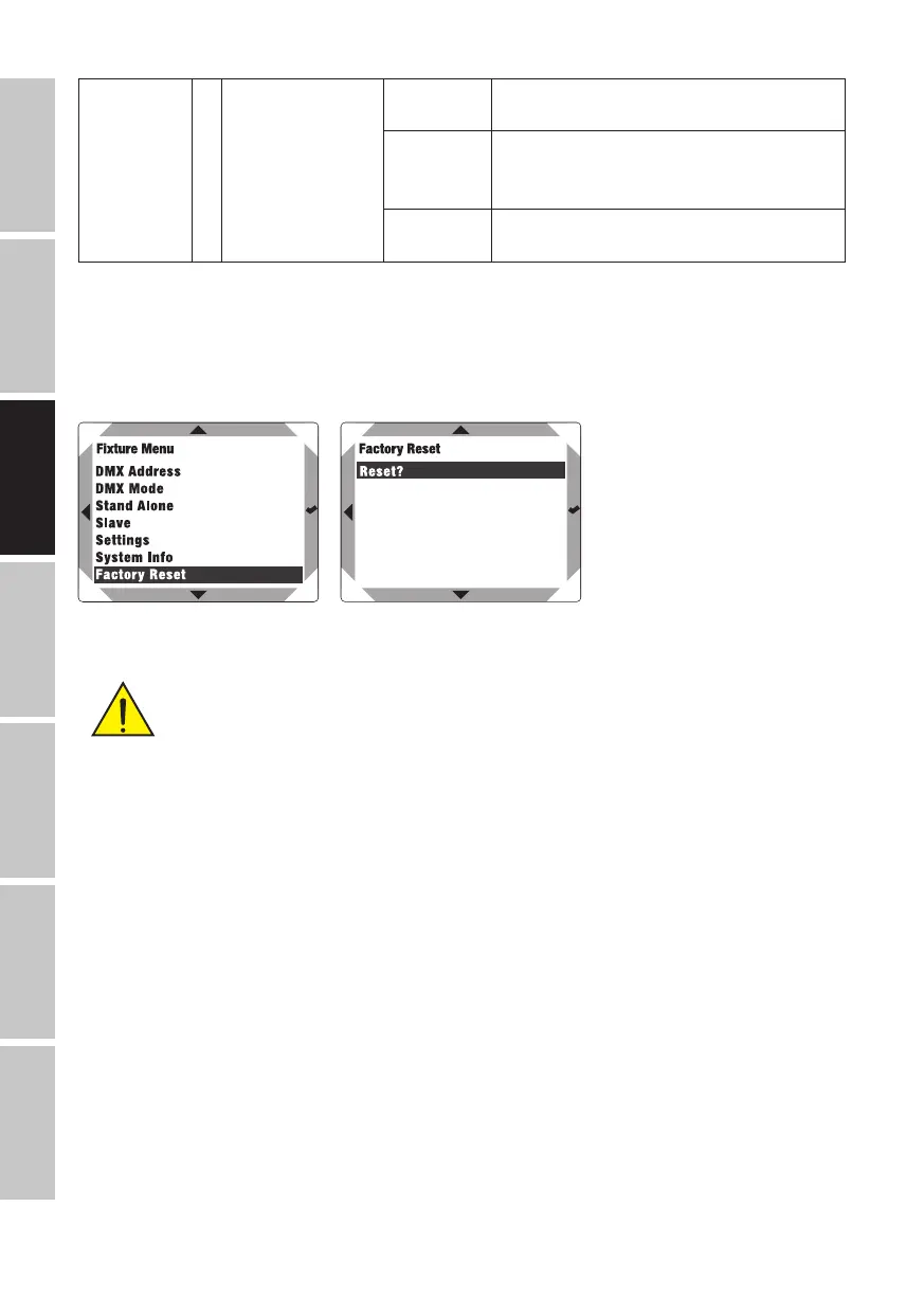 Pour réinitialiser la lampe frontale aux paramètres d'usine, sélectionnez Factory Reset et confir-