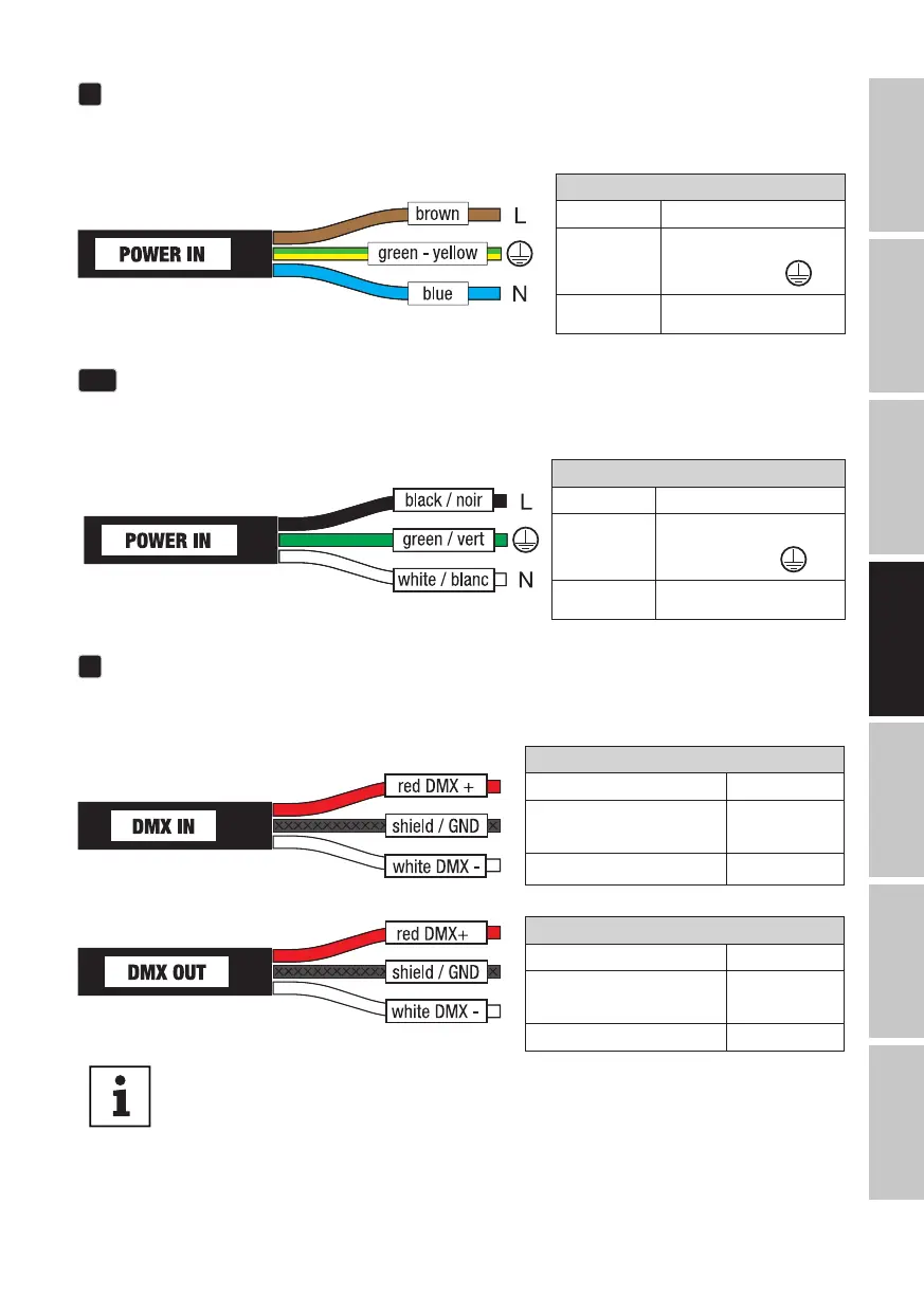 Cable para controlar el faro y transmitir la señal de control. El faro se entrega sin enchufe. DMX IN