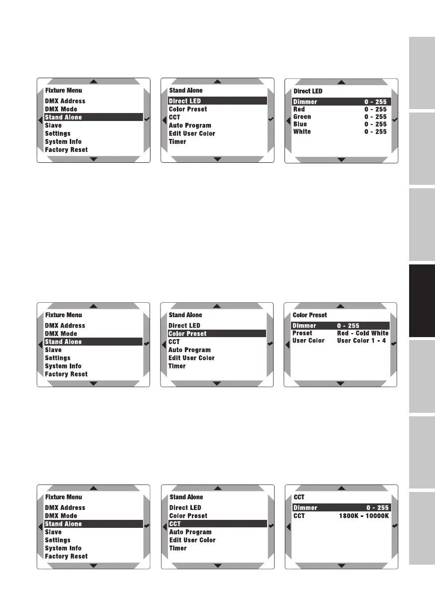 Seleccione Stand Alone, confirme la selección y, a continuación, seleccione Direct LED y