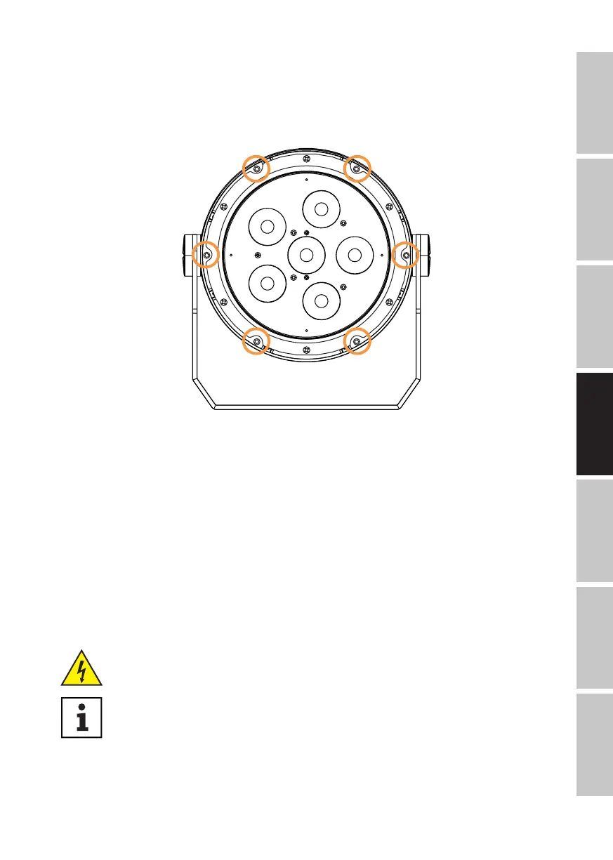 afloje los seis tornillos Allen (ver marcas) de la pantalla antideslumbrante con una herramienta