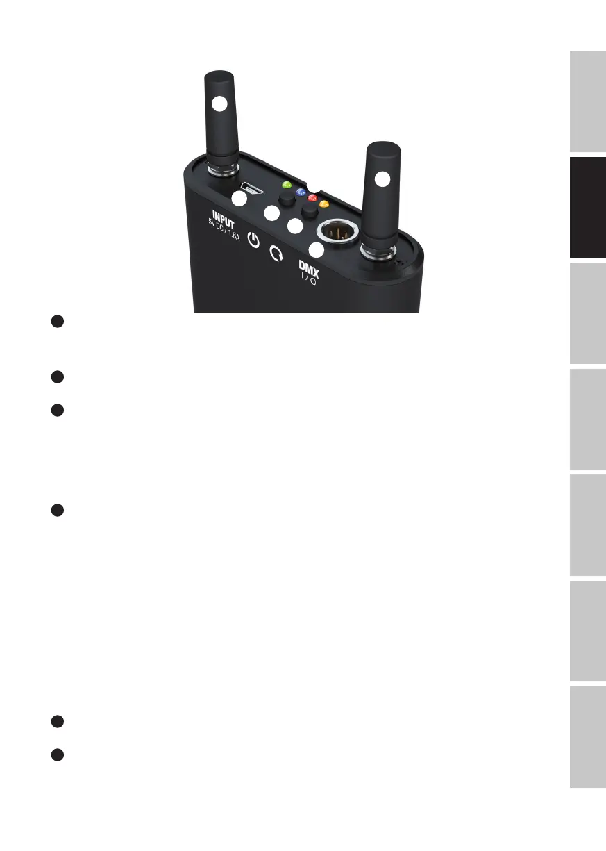 tragen, leuchtet die LED permanent. Blinkt die LED circa alle 2 Sekunden, werden keine Daten von der iDMX App via WiFi übertragen. Nach