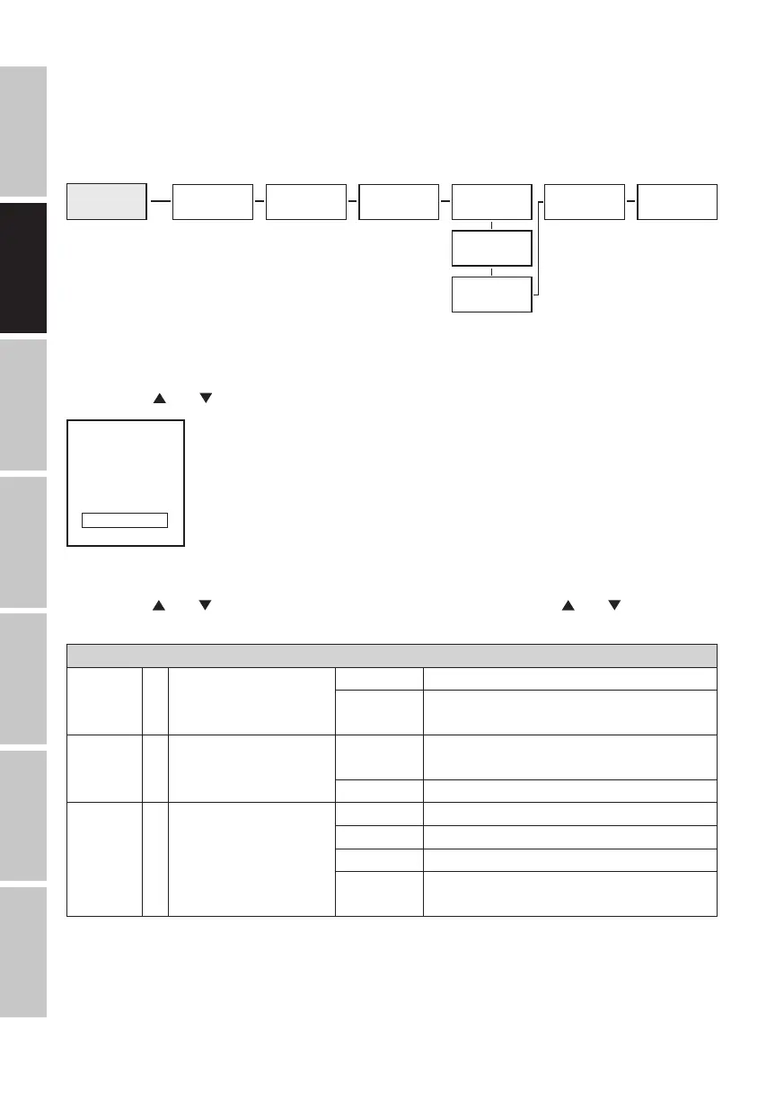 Auswahl mit und , bestätigen mit ENTER, Wert bzw. Status ändern mit und , bestätigen