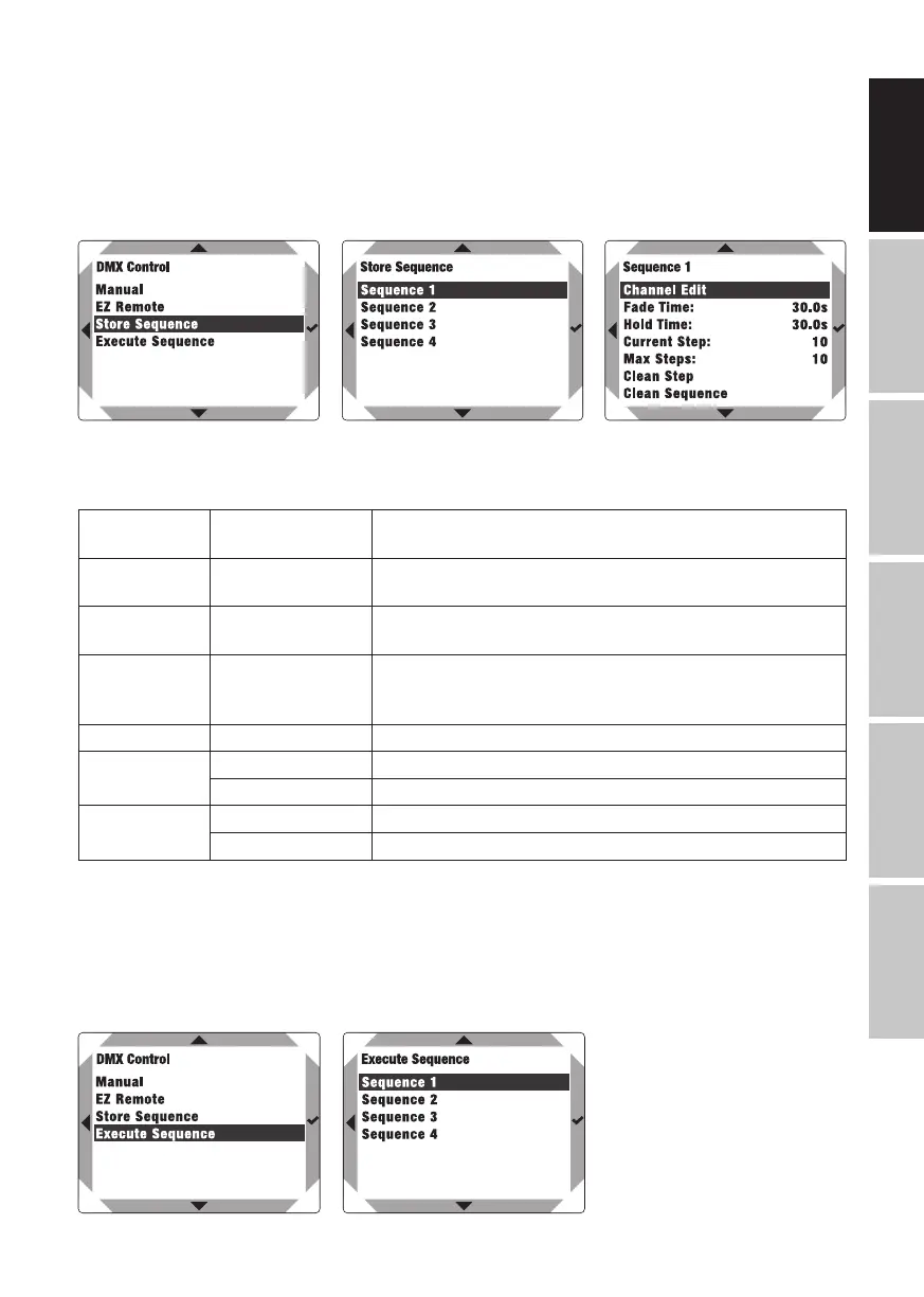 Fade Time: 0.0s– 30.0s Set the fade time of the selected step from 0.0 seconds to
