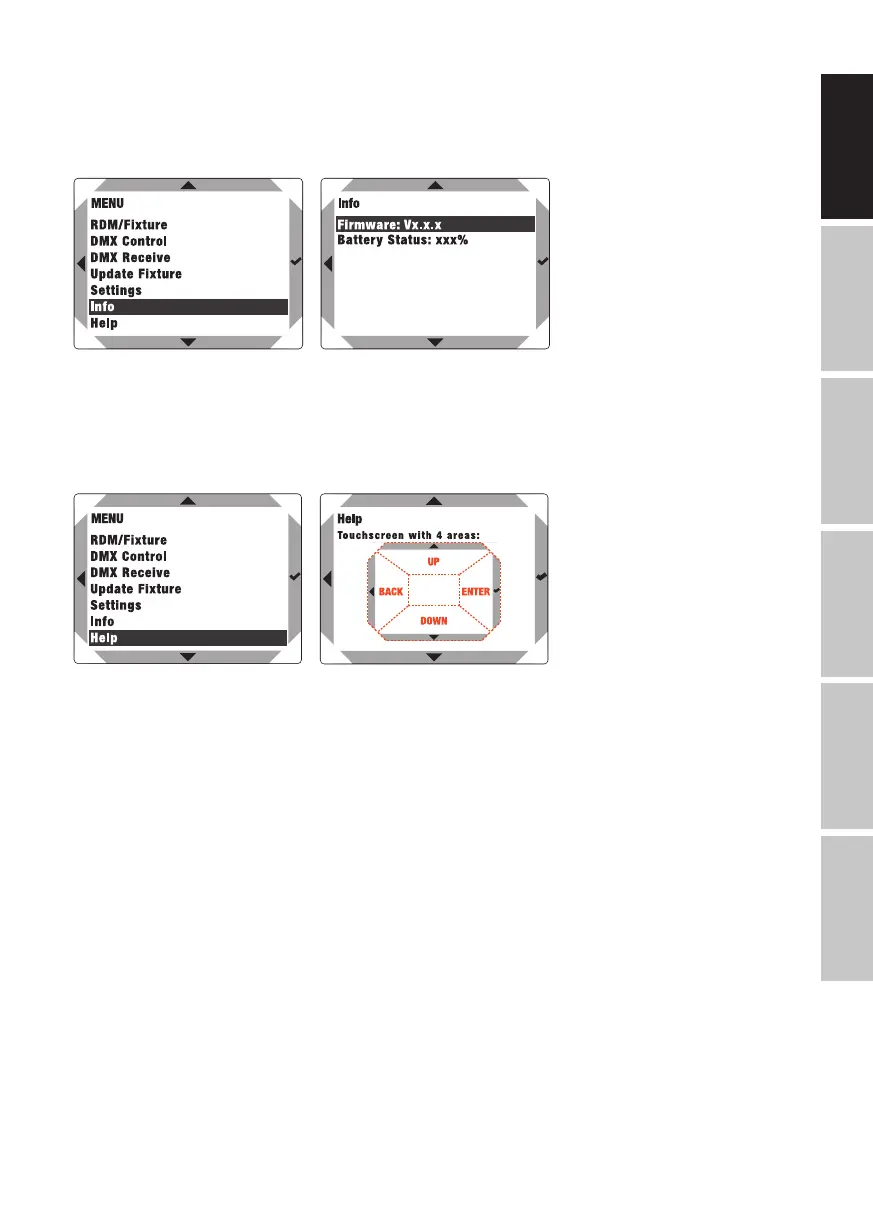 In the main menu, select Info and confirm. The firmware version and battery status of the UNICON