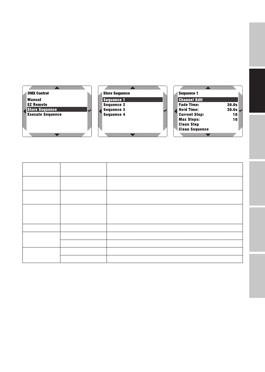 Wählen Sie im Hauptmenü DMX Control aus, bestätigen die Auswahl, wählen dann Store