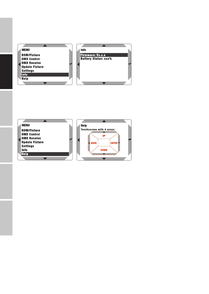 Wählen Sie im Hauptmenü Help aus und bestätigen die Auswahl. Nun werden die 4 Bedienflächen