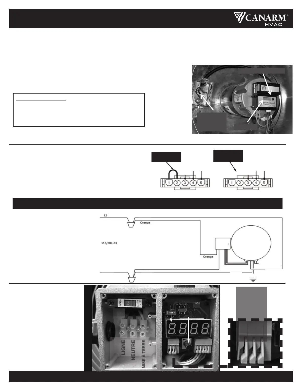 N.B. : Pour opération à 115VCA le fil de liaison bleu fourni (lié au