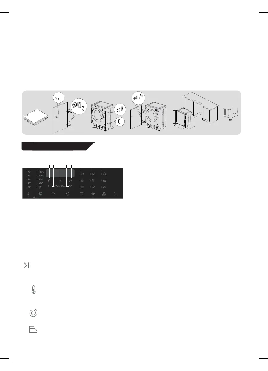 Monteer de meubeldeur aan de voorkant van de wasmachine met behulp van de scharnieren. Bevestig de