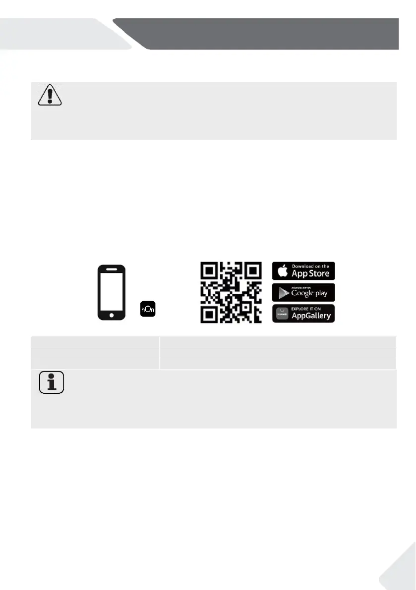 worden nageleefd, ook als u het apparaat bedient via de hOn-app terwijl u niet thuis bent. U moet