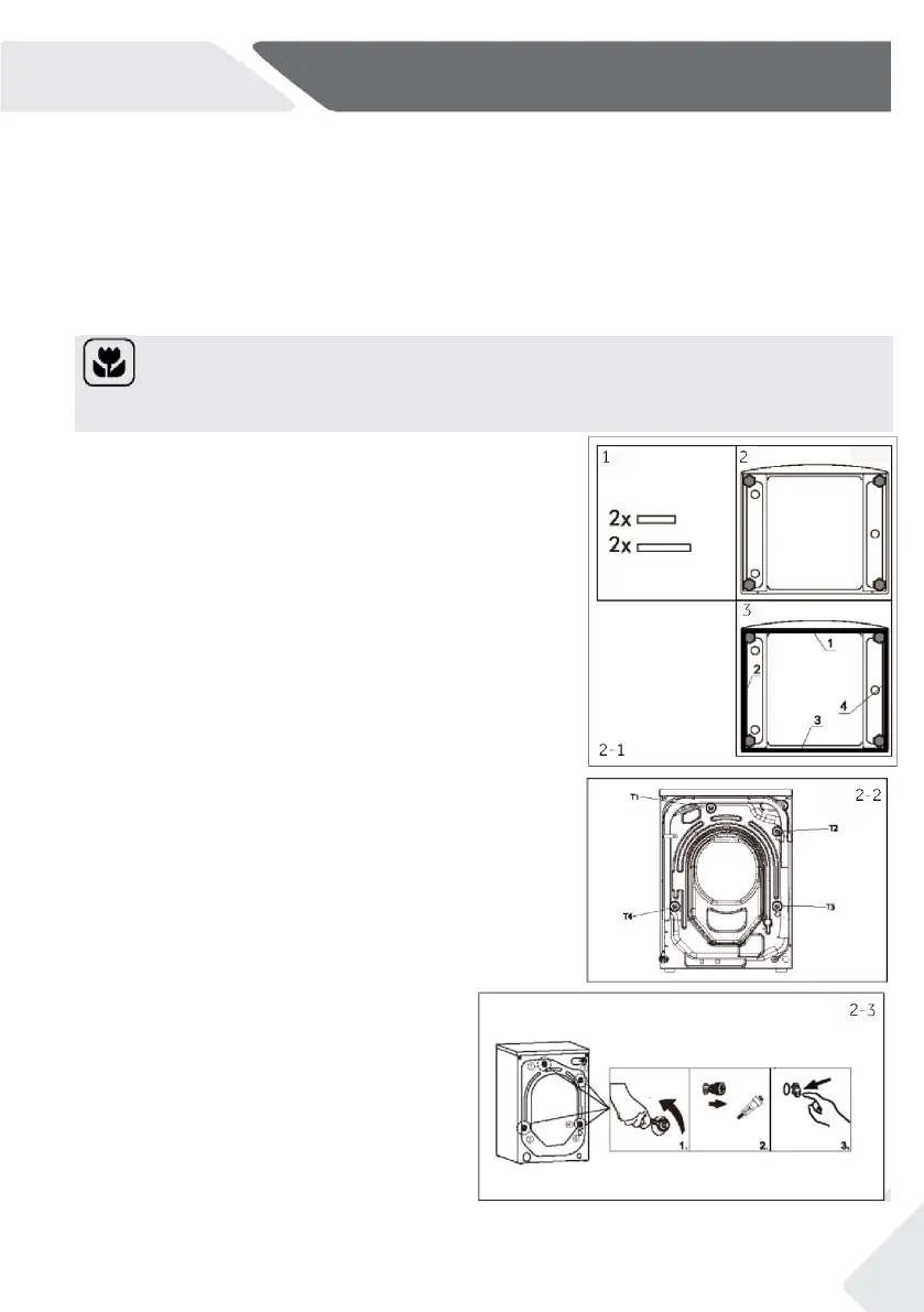 ► Zorg ervoor dat alle transportbouten verwderd zn.