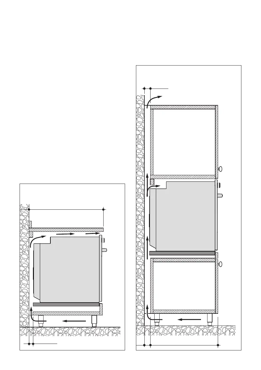 To ensure internal ventilation, aeration channels must be provided as illustrated in the
