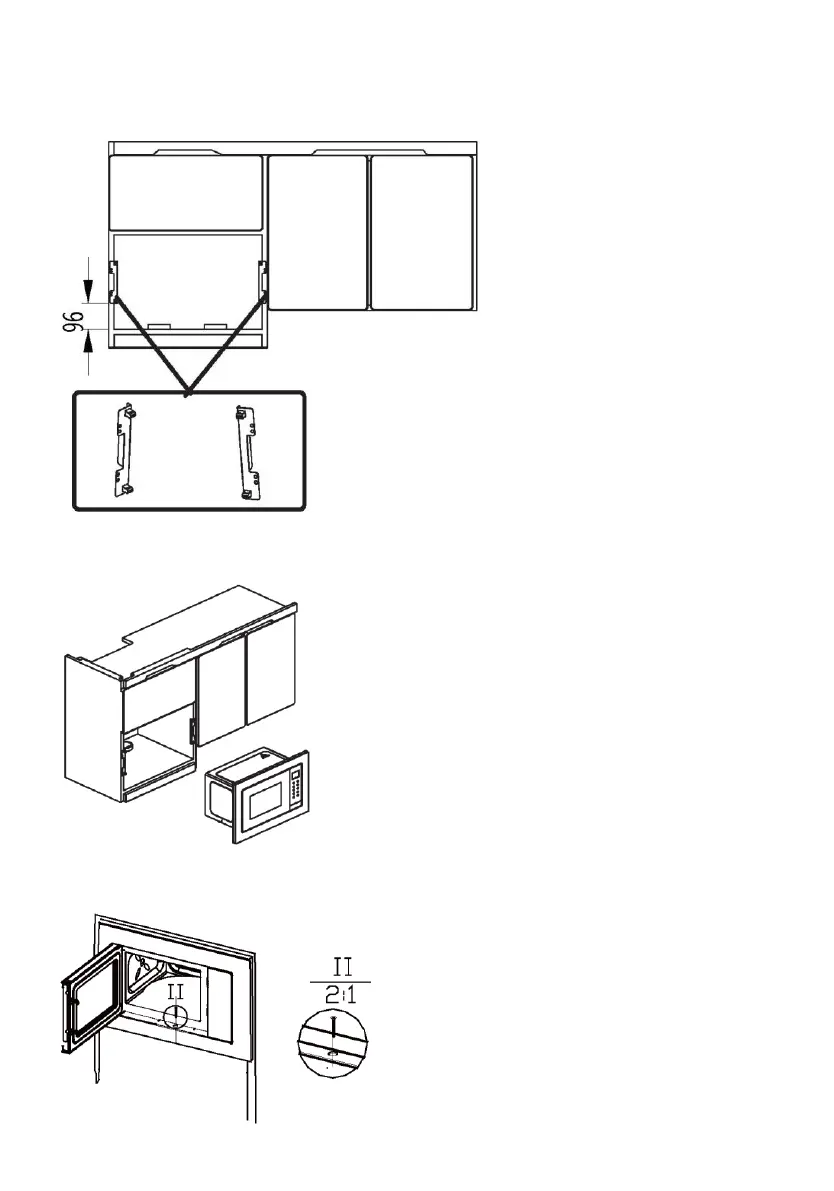 6) Instale el soporte en el armario, con el punto más bajo del soporte a una distancia de 96mm