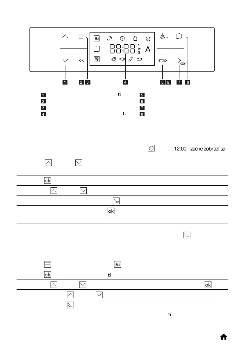3) Stláčaním „ “ upravte číslice minút, hodnota má byť“ alebo „ z intervalu 0 – 59.