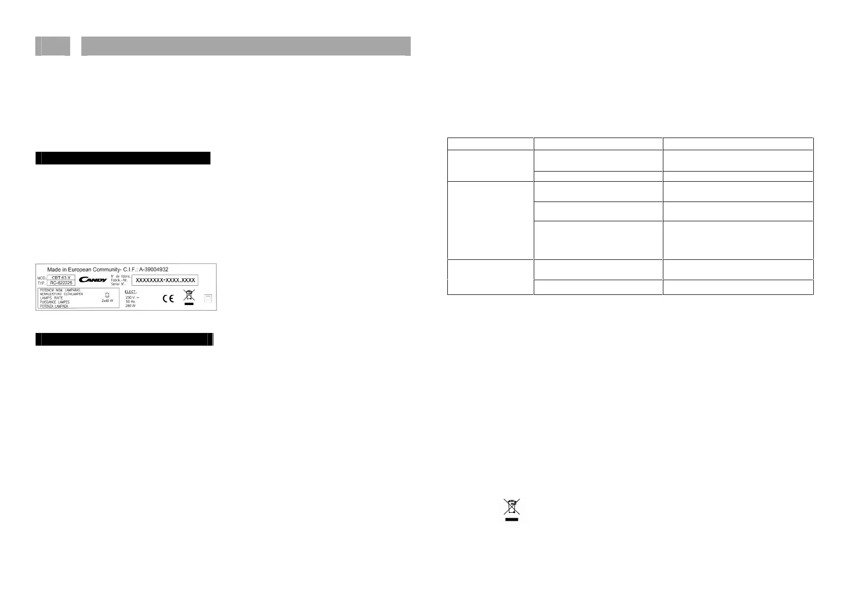 Bekijk gratis de handleiding van Candy CBT 63 X, stel vragen en lees de antwoorden op veelvoorkomende problemen, of gebruik onze assistent om sneller informatie in de handleiding te vinden of uitleg te krijgen over specifieke functies.