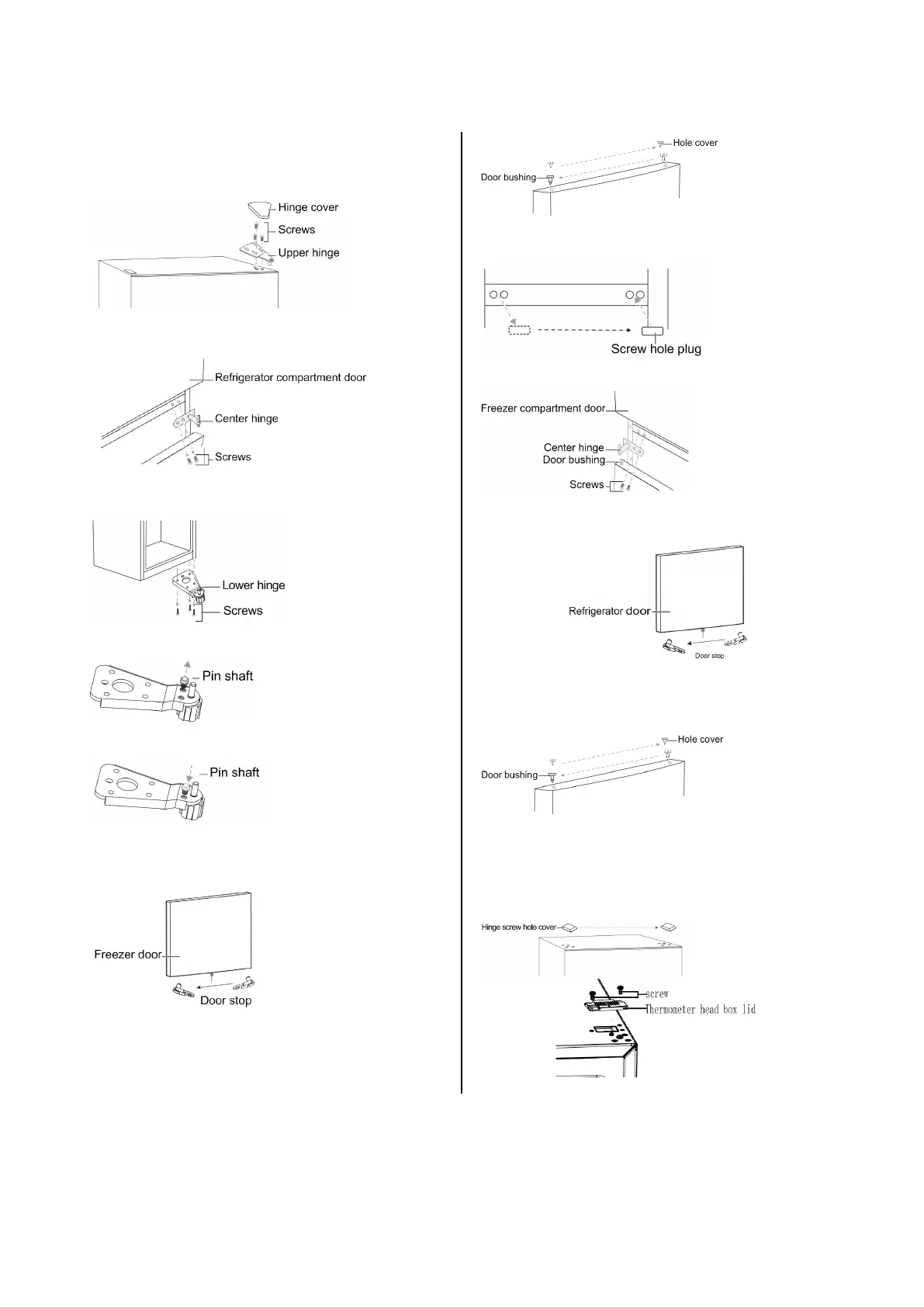 8. Insert the pin shaft into the left hole on the lower hinge,
