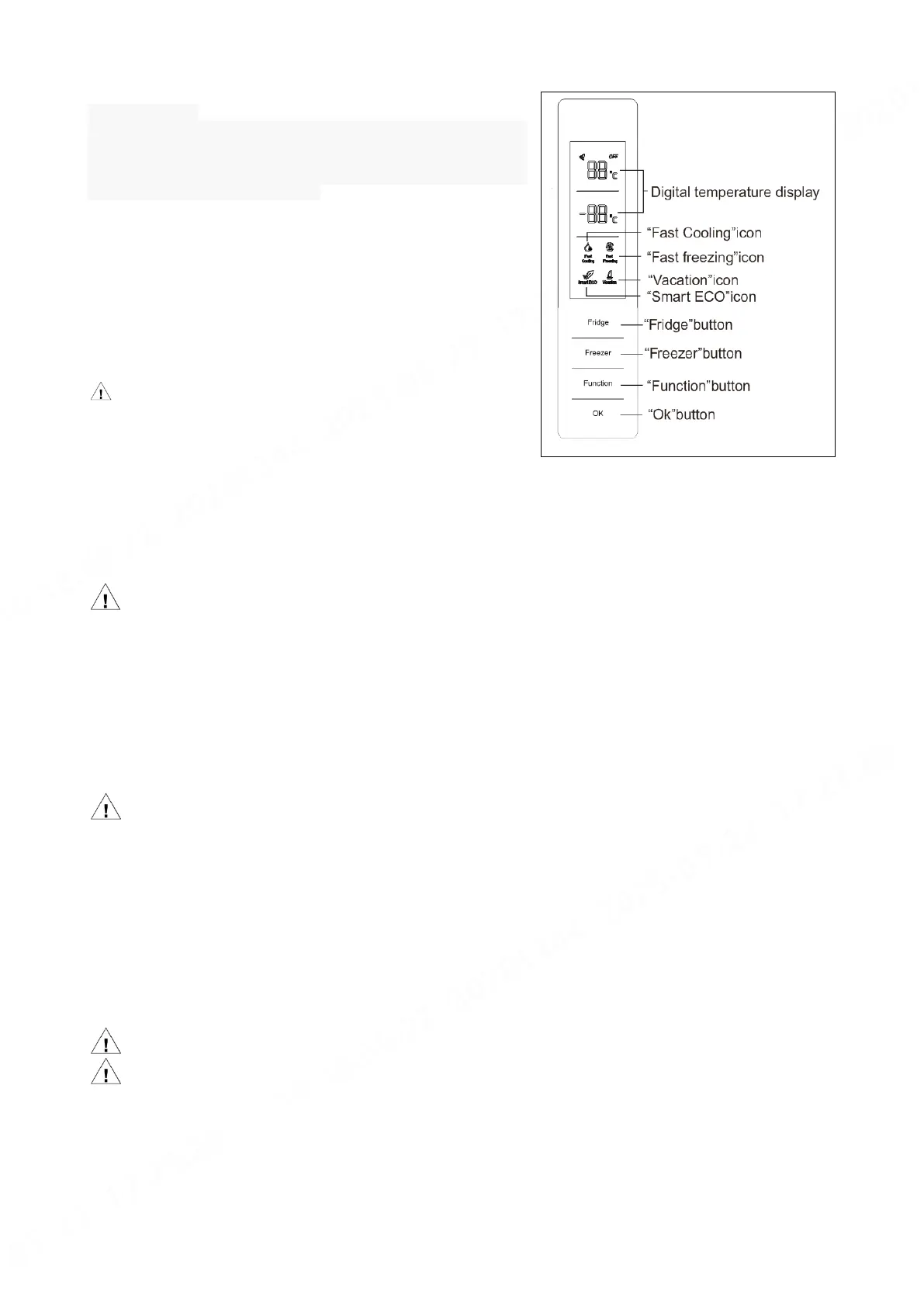 1) When the fast cooling function is enabled, the fridge temperature will be set at 2℃, with the compartment temperature