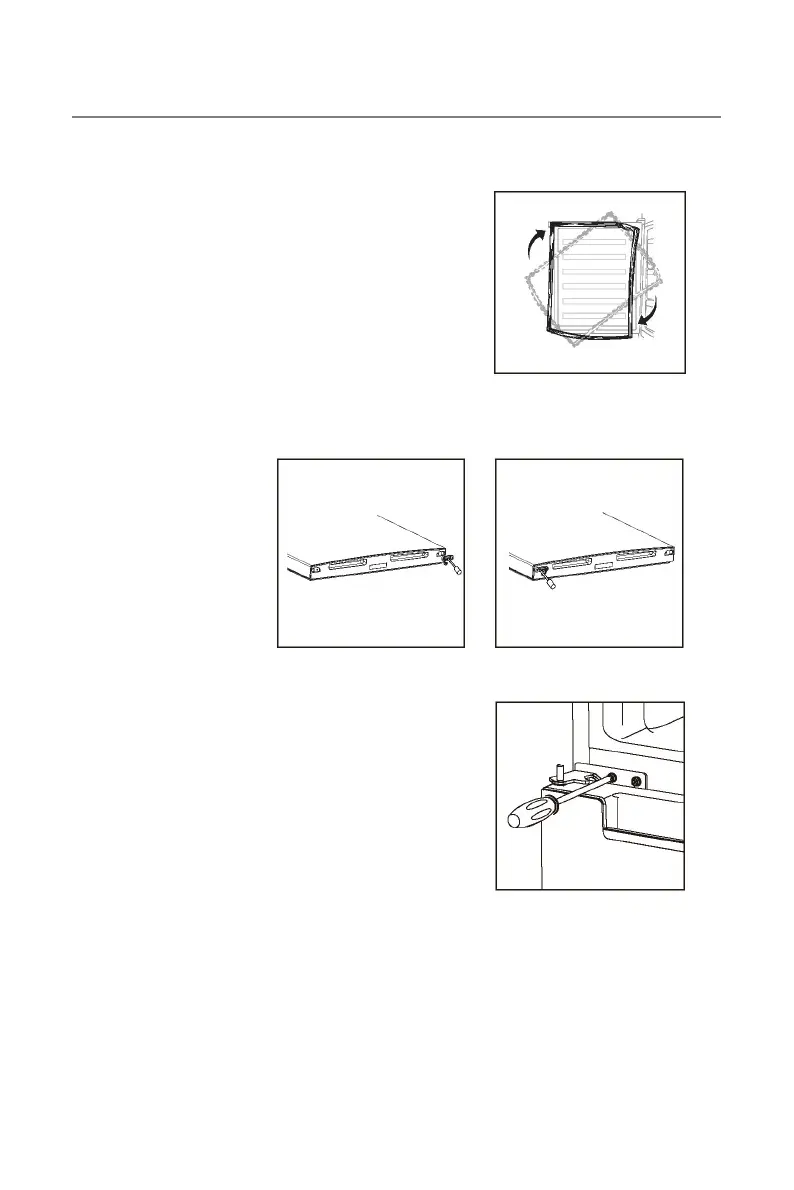 9. Instale la puerta inferior, ajuste y fije la bisagra central en el mueble.