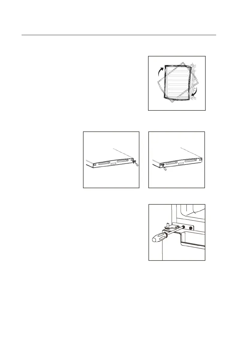 9. Installez la porte du bas, ajustez et fixez la charnière centrale sur l’appareil.
