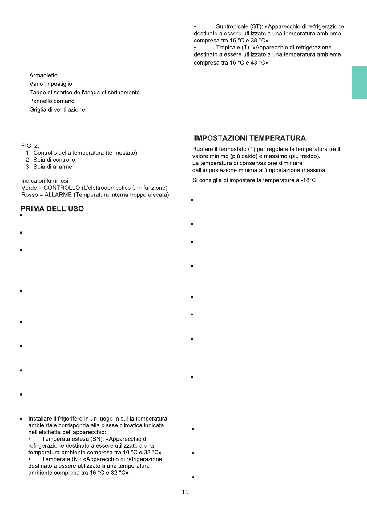 temperatura all'interno dell'elettrodomestico e poi