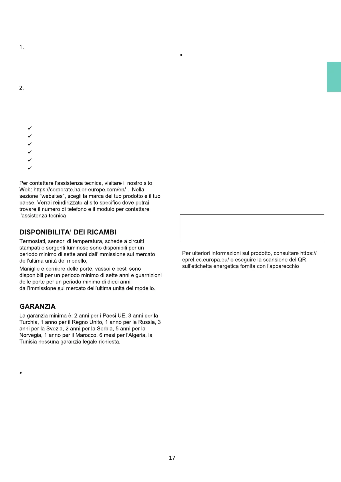 dell'elettrodomestico, in particolare per quanto riguarda la