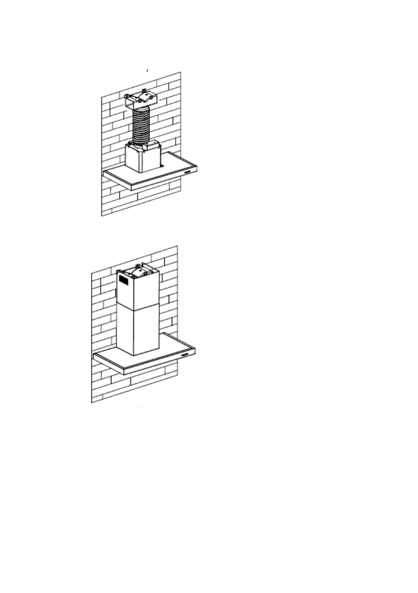 4.Attach the exhaust pipe onto the air outlet of the cooker hood as shown