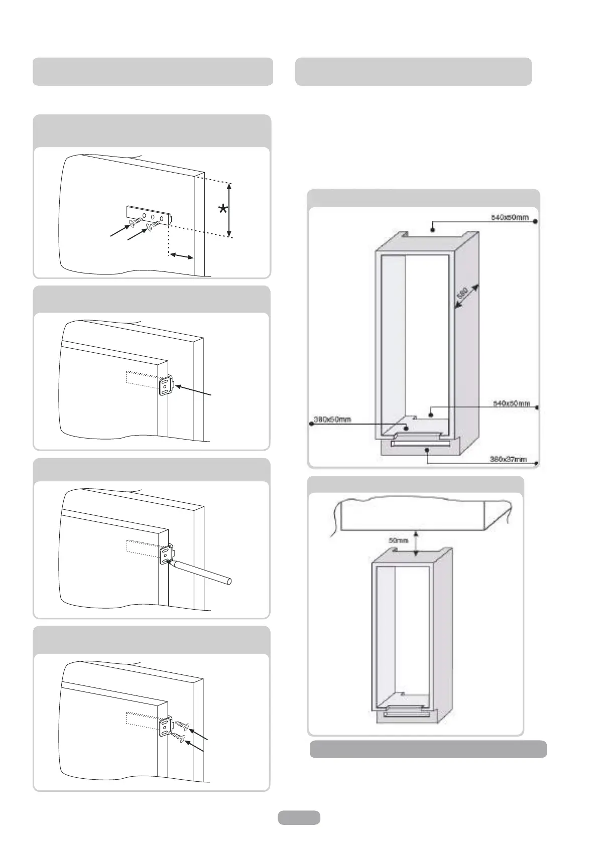 Open de deuren van de inbouwkast en de koelkast. Plaats de