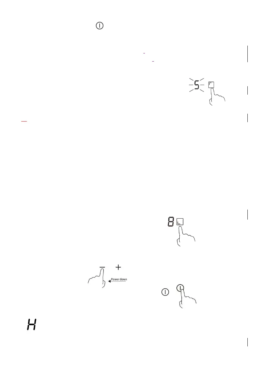 • If you don’t choose a heat setting within 1minute, the hob will automatically turn