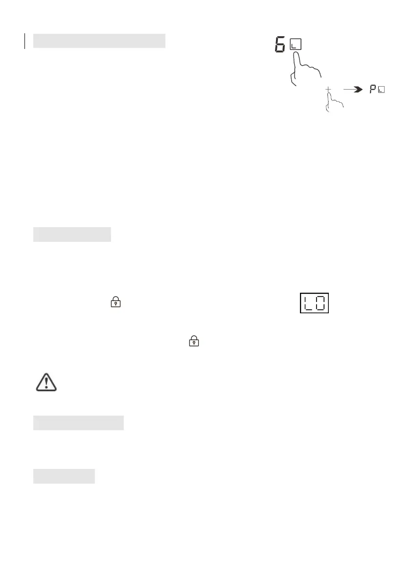When the hob is in lock mode, all the controls are disable except the main