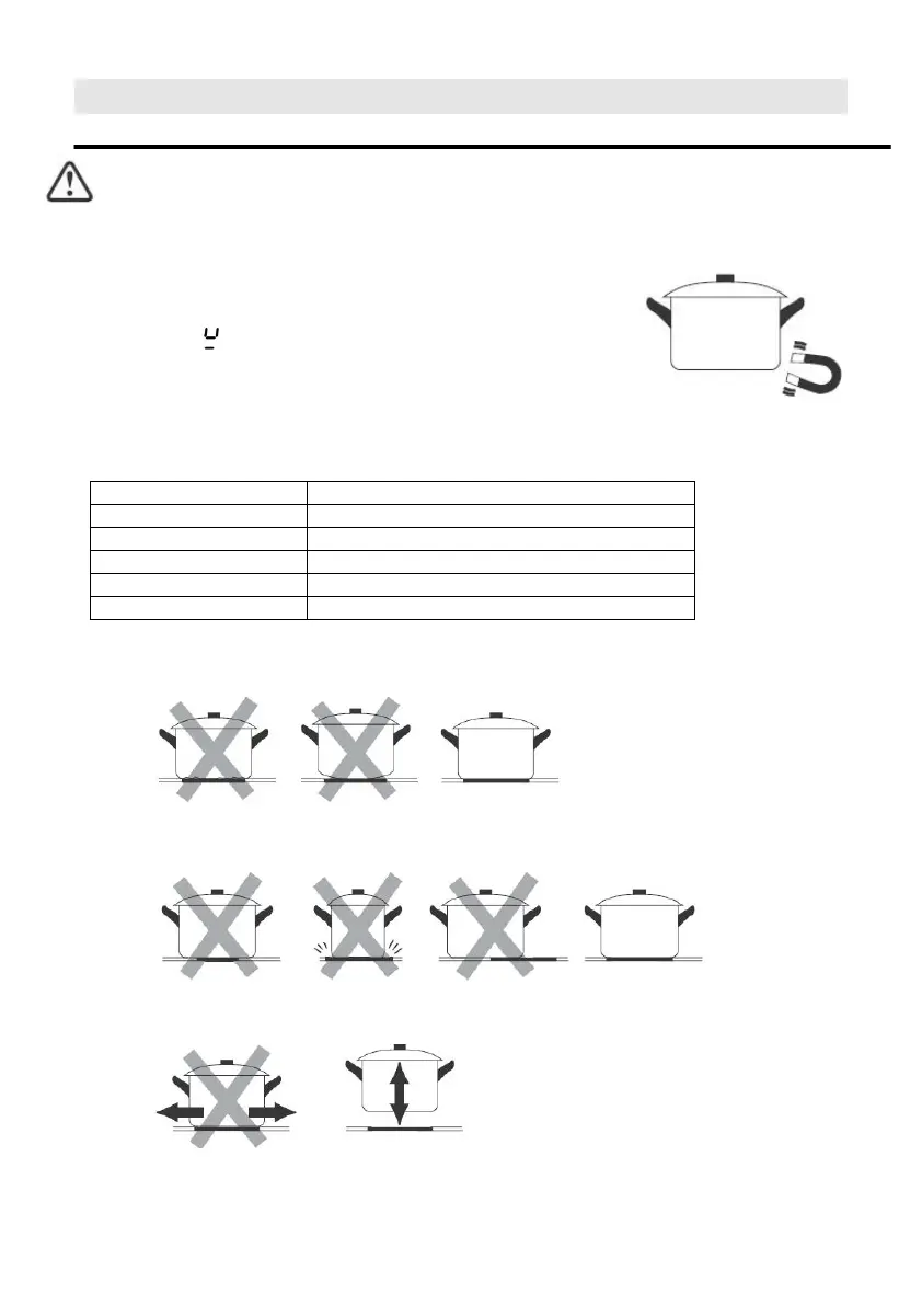• Only use cookware with a base suitable for induction cooking. Look for the