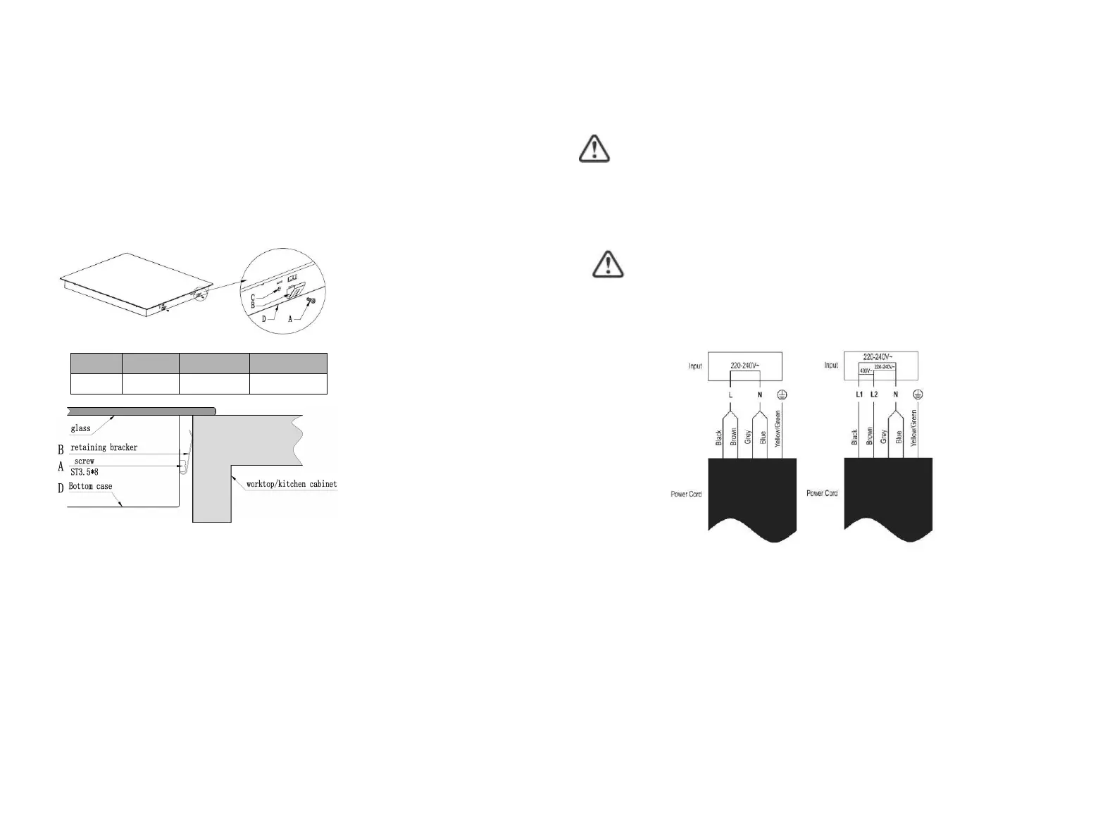 Fix the hob on the work surface by screw 4 brackets on the bottom case of hob