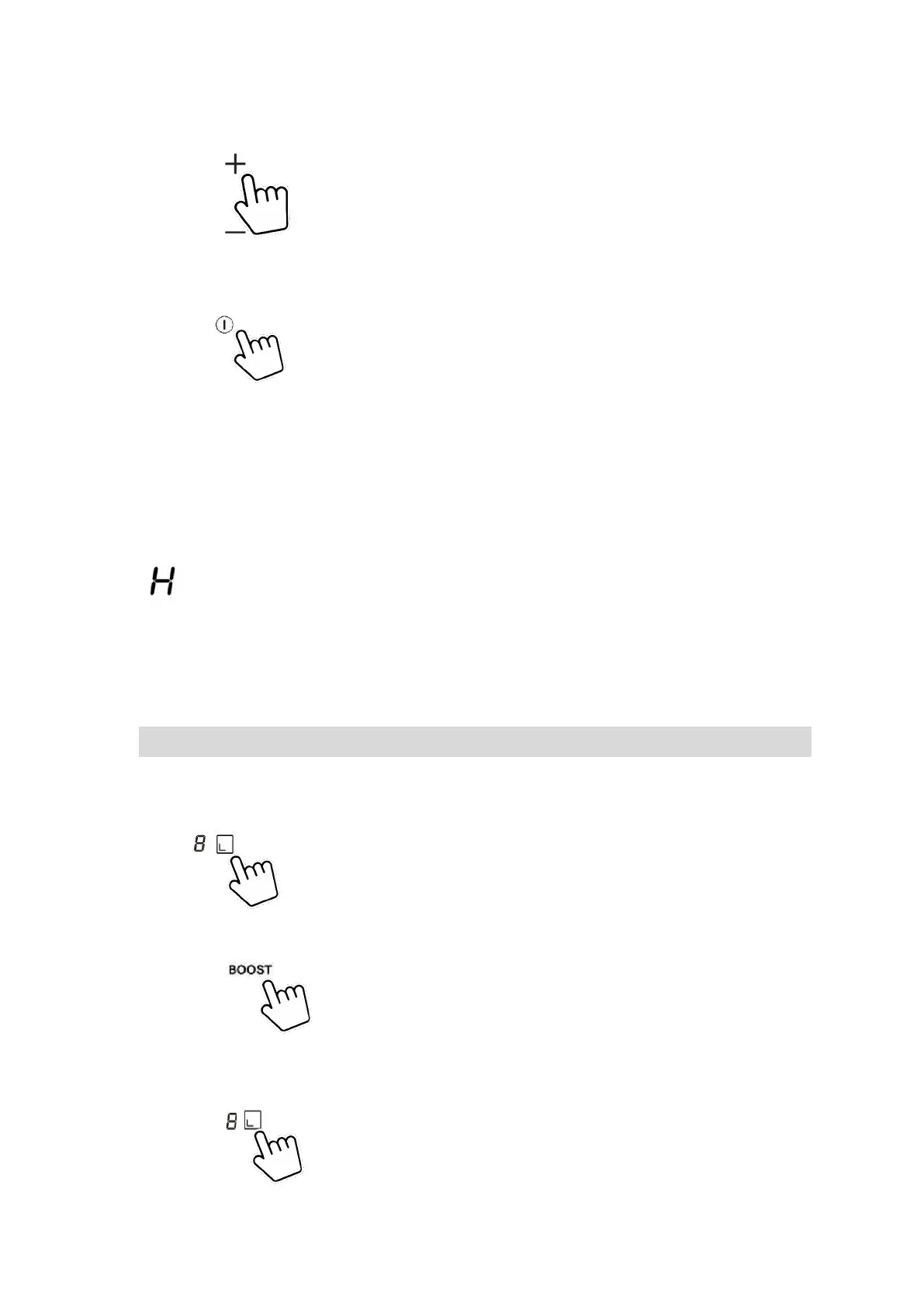 • Sammuta keittoalue koskettamalla tehotason säädintä. Varmista, että näytössä näkyy 0.