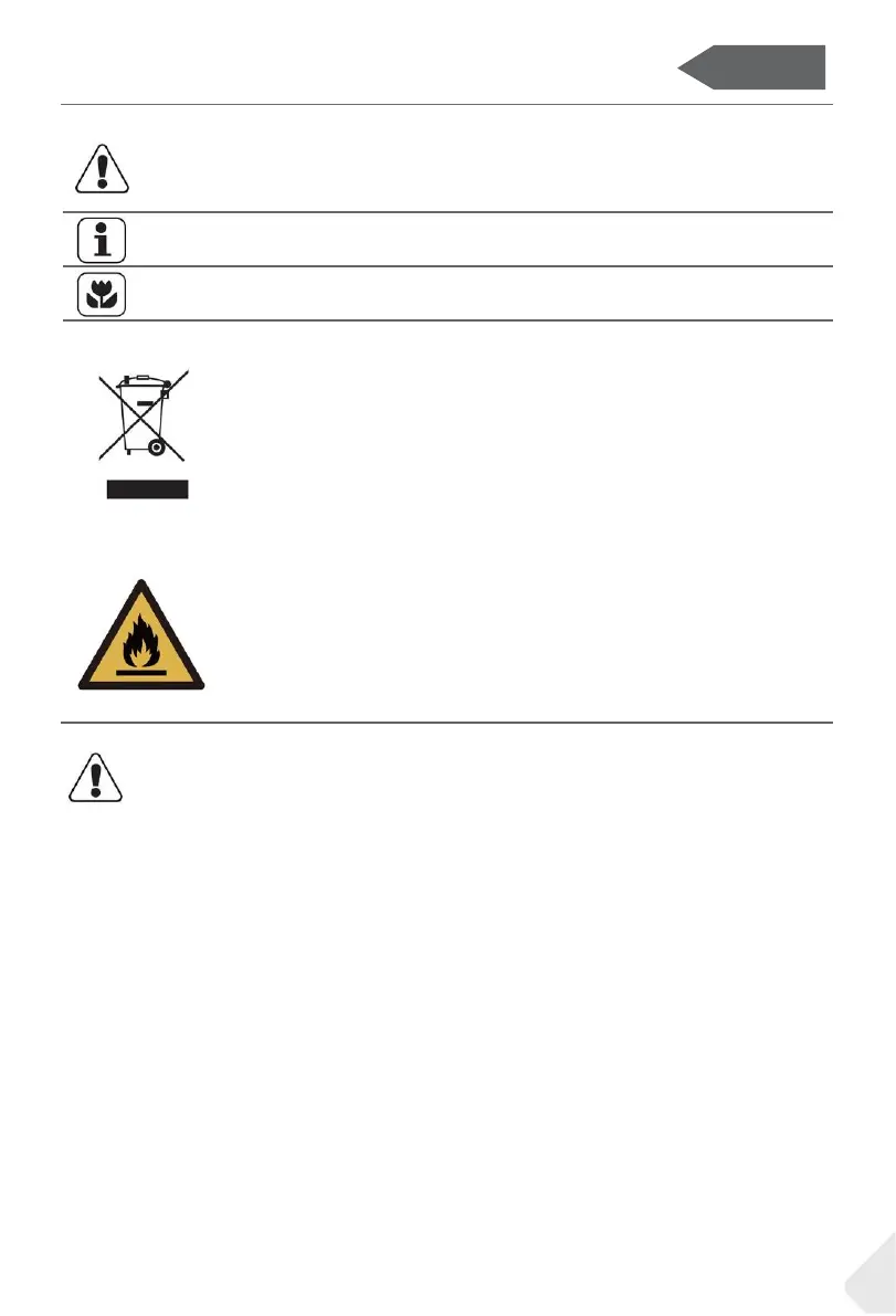 WAARSCHUWING: Risico op brand/ontvlambaar materiaal