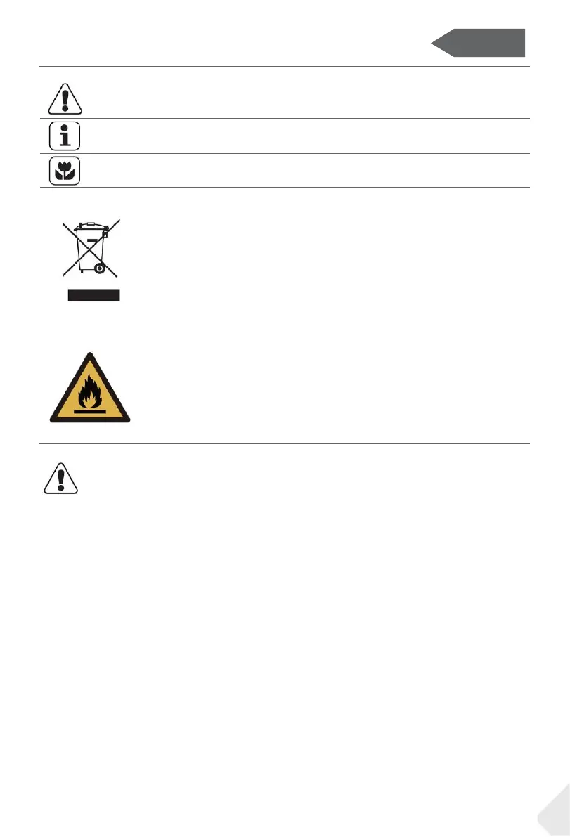 AVISO: Risco de incêndio/material inflamável