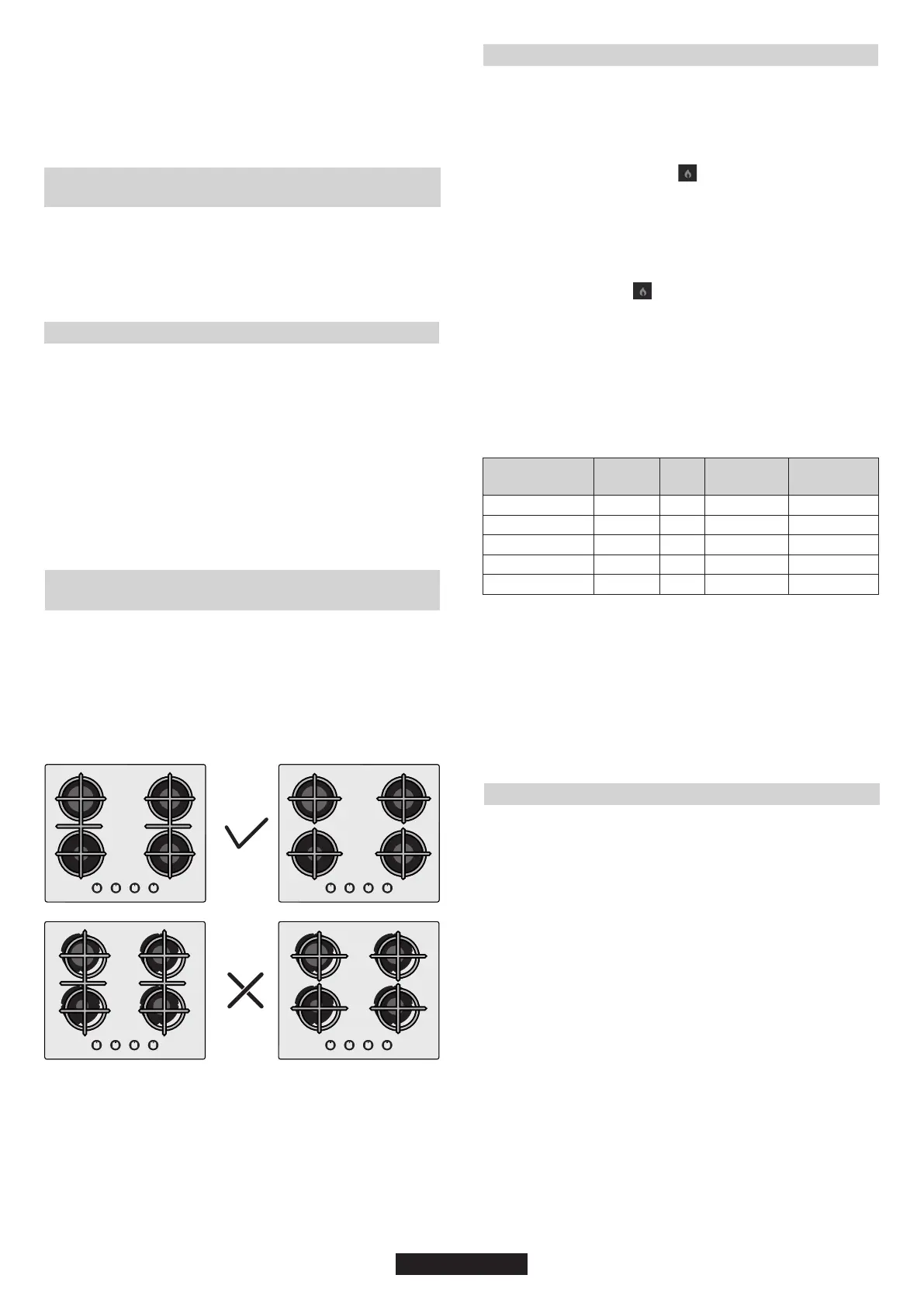 Prije uključivanja ploče za kuhanje, pobrinite se da su plamenici I