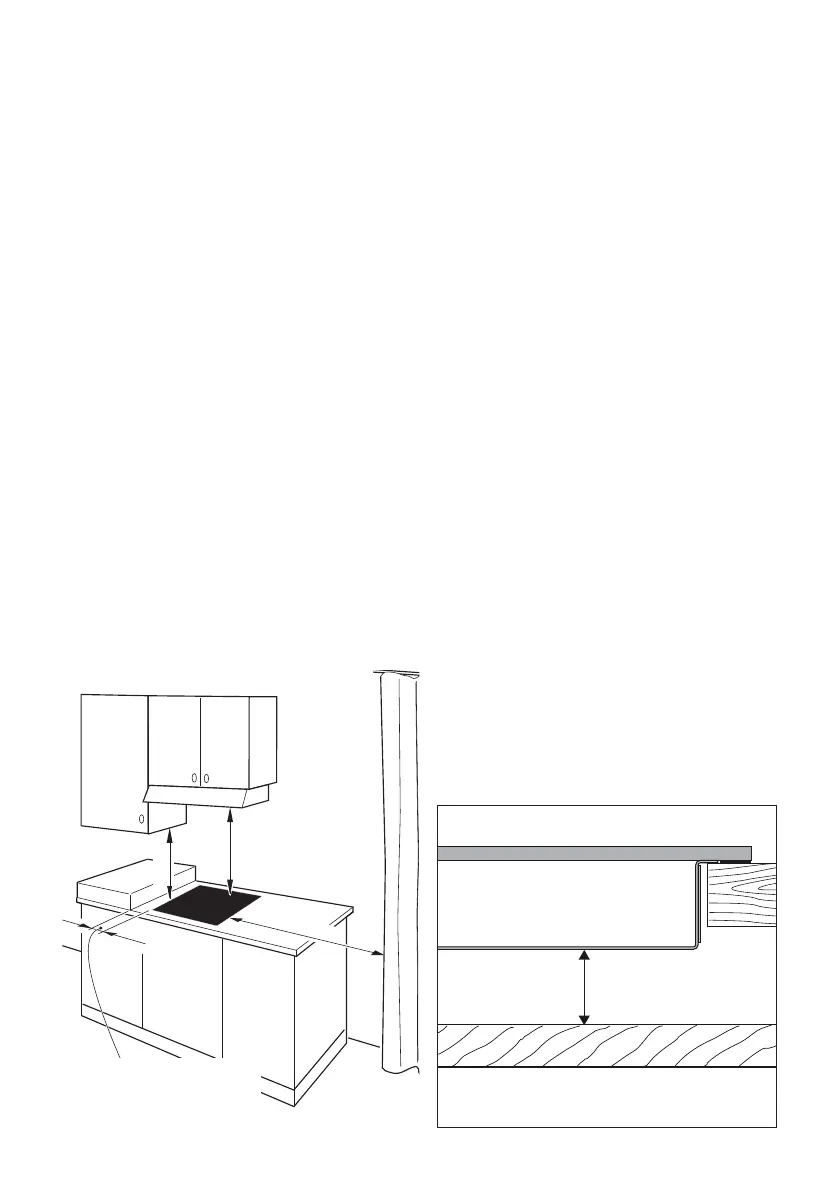 • There must be a distance of at least 650 mm between the hob and any wall cupboard