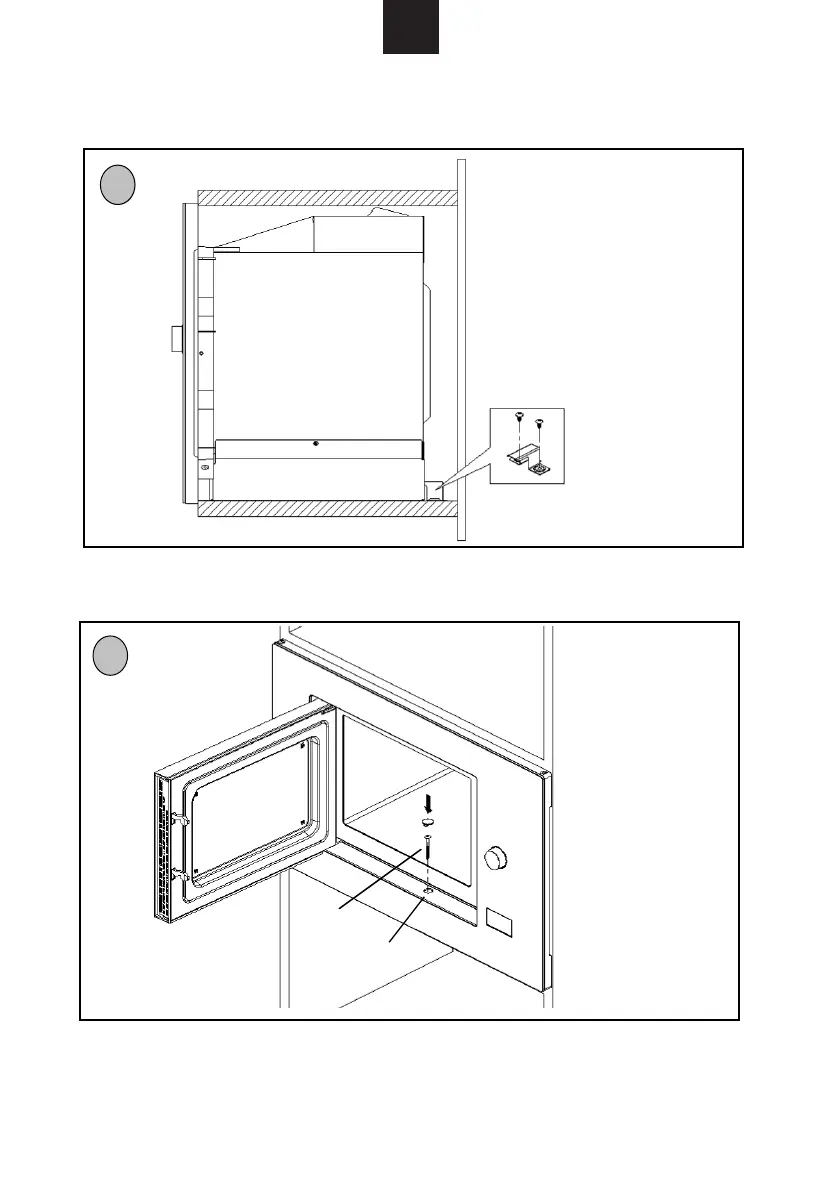 5. Aprire la porta; fissare il forno nella nicchia con la vite C e coprire il buco di installazione con la