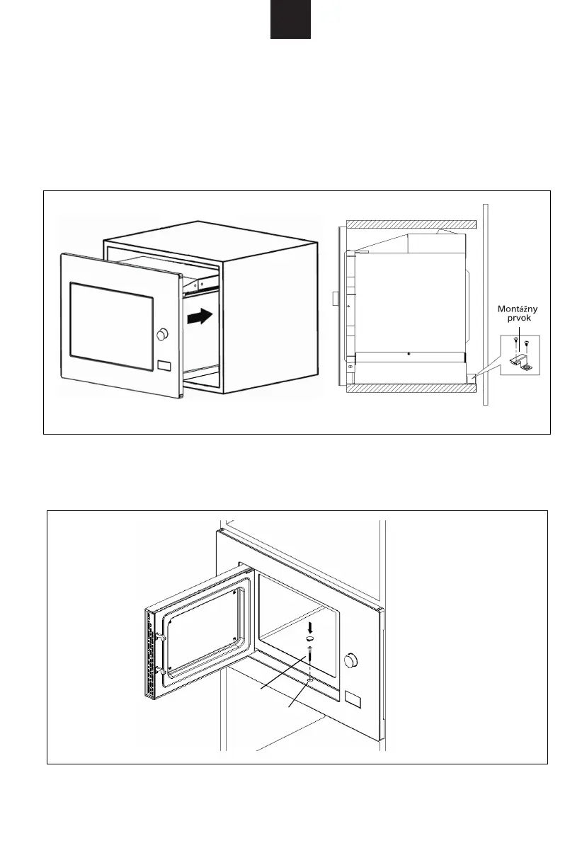 5. Otvorte dvierka, pripevnite rúru ku skrinke pomocou skrutky B pri montážnom
