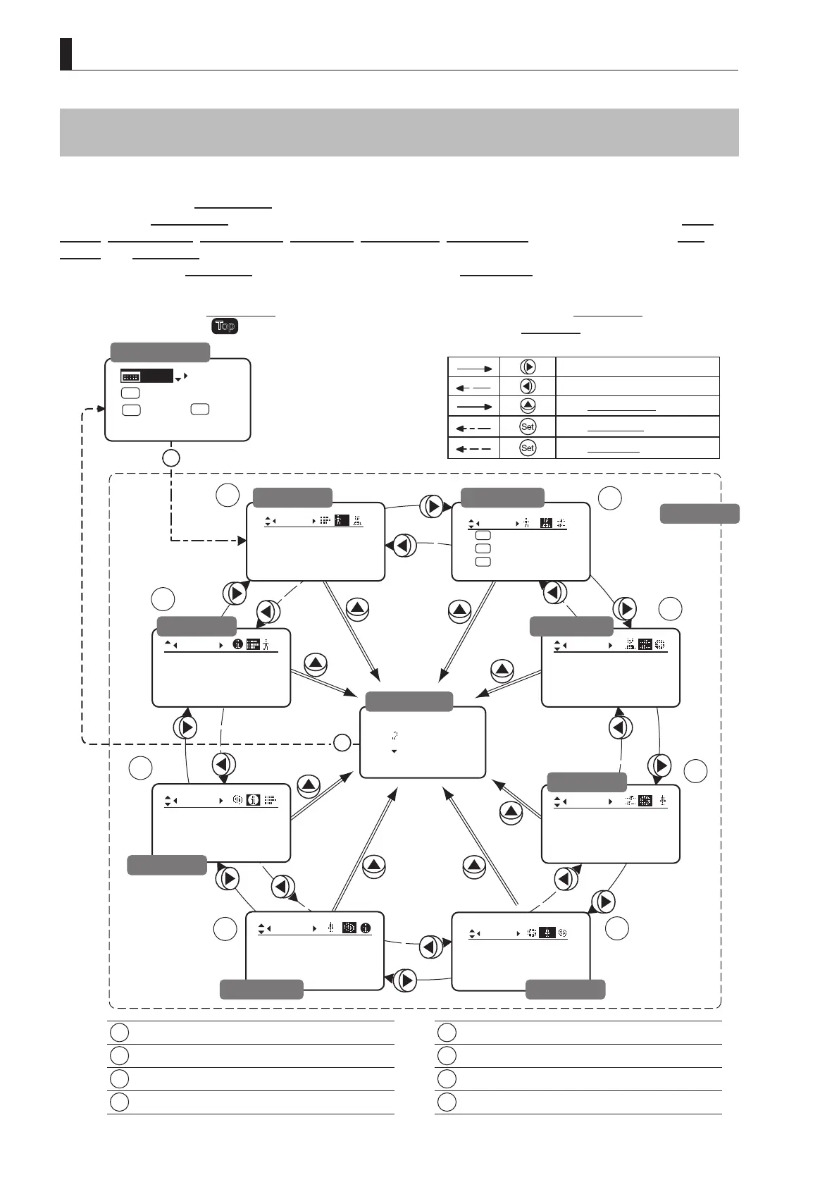 Specically, the Menu screen in Basic mode is organized into 8 (or for “R” type lenses, 7) screens by function: User