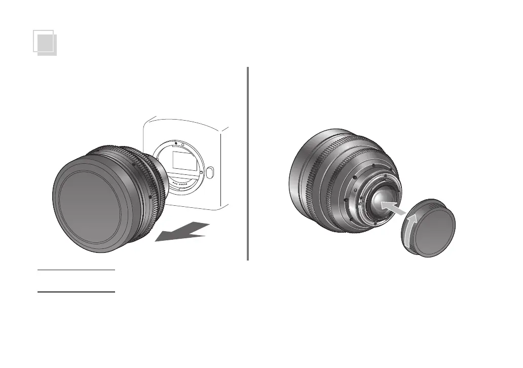 • After detaching the lens, place the lens with the rear end up to prevent the lens surface and