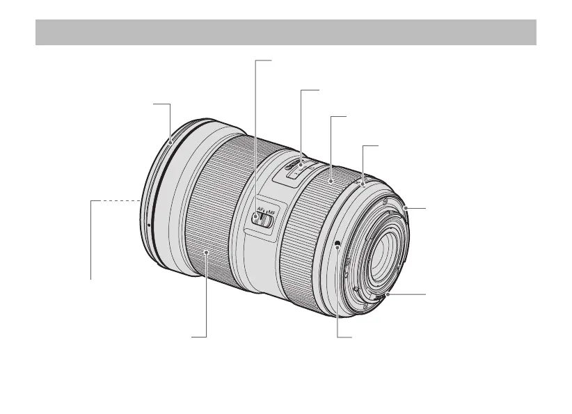 Focusing ring (→ 7) Lens mount index (→ 6)