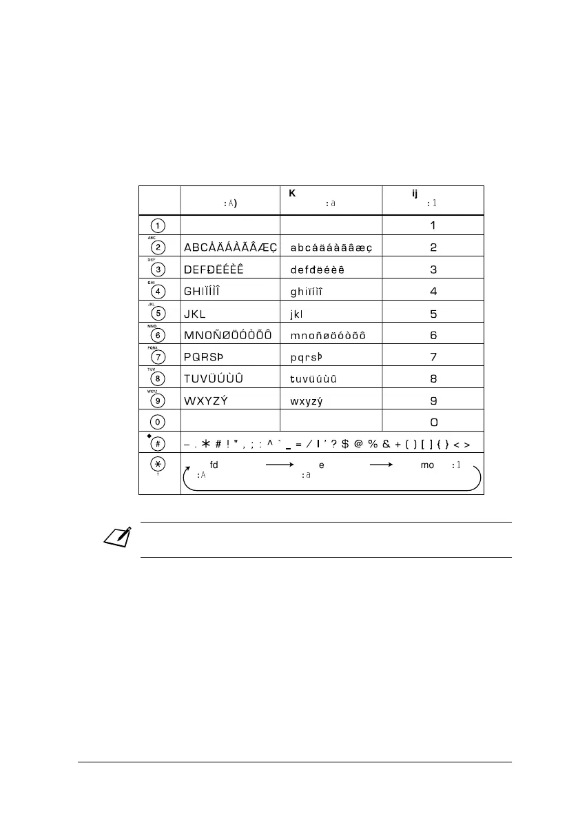 in te drukken voor het gewenste teken:
