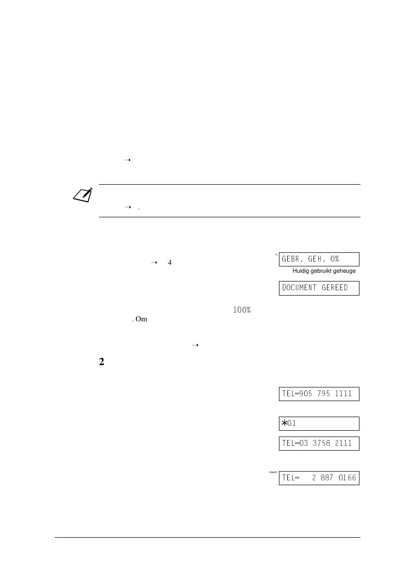 document en voer de faxnummers in de FAX scant het document in het geheugen en