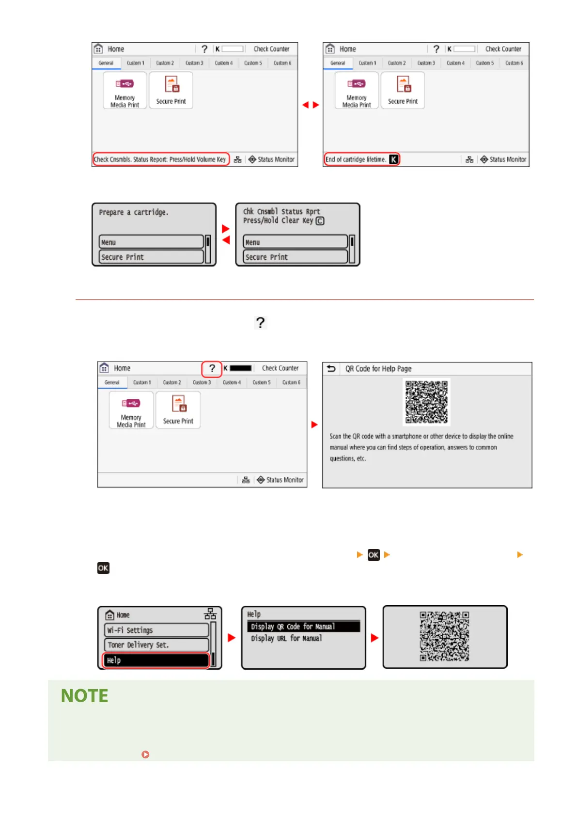 A QR code is displayed by pressing [Help] in the [Home] screen
