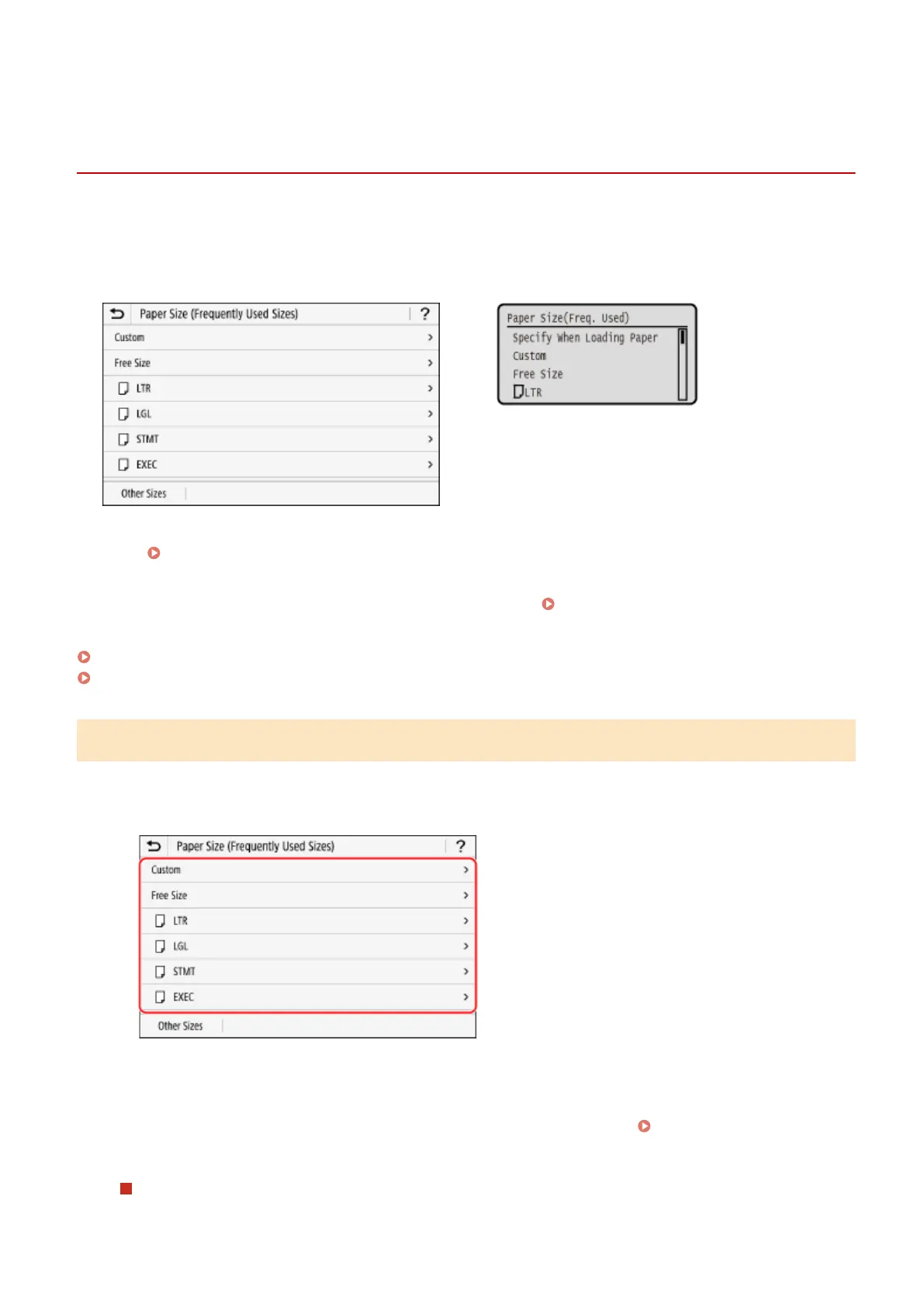 ● If you frequently need to change the paper to be loaded, set to [Free Size]; this will reduce the number of