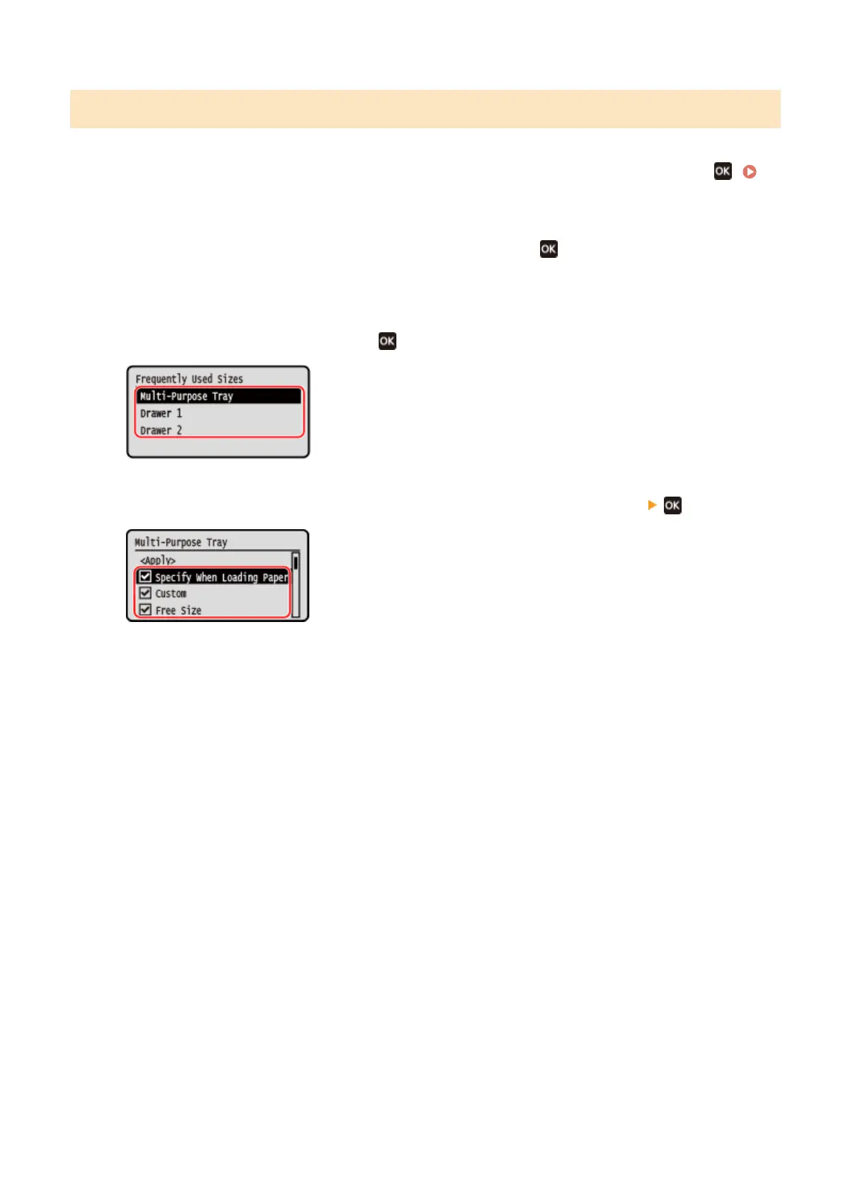 ➠ The [Select Frequently Used Paper Sizes] screen is displayed.