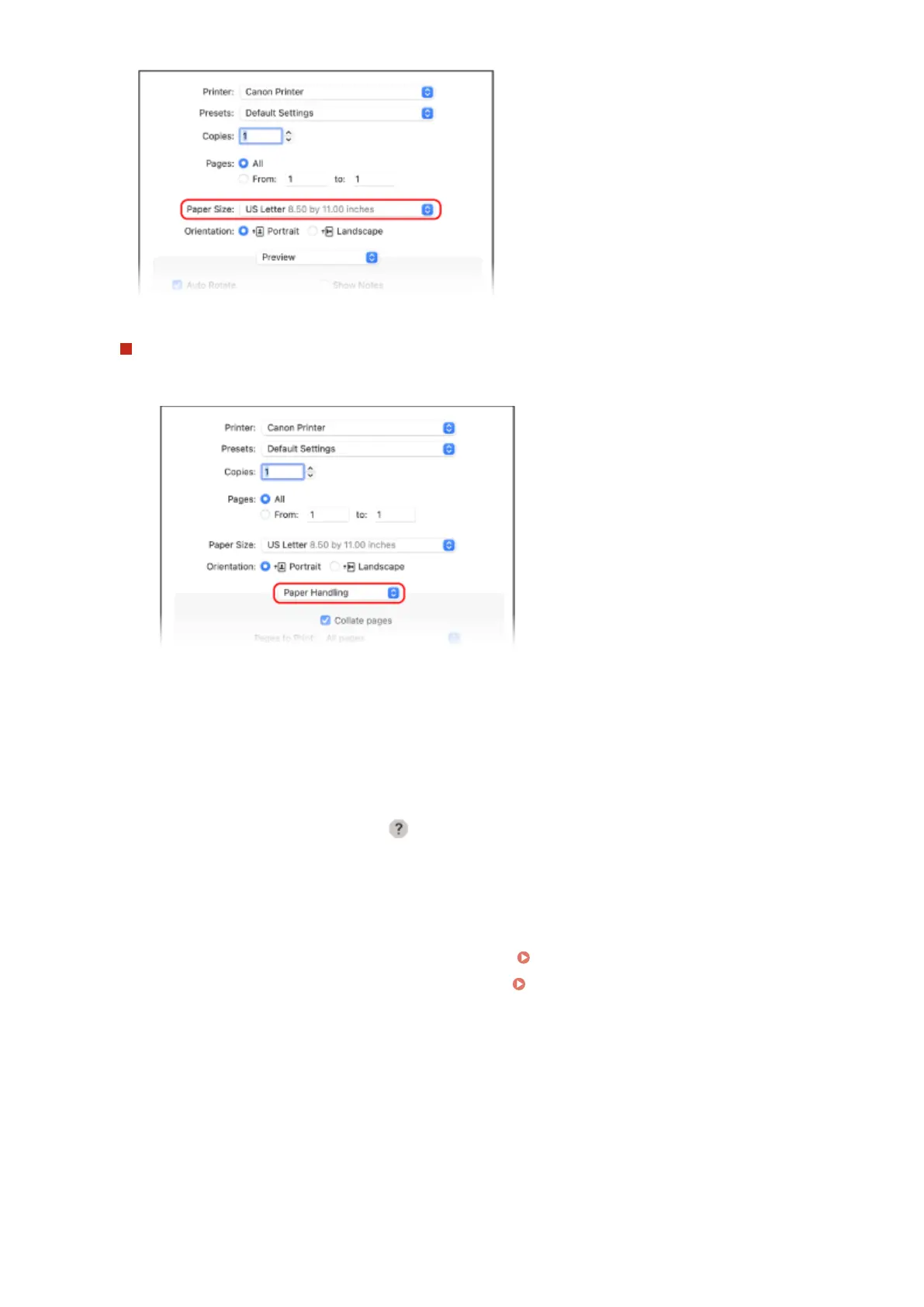 ● You can cancel printing from the printer icon in the Dock. Canceling Printing from a Computer(P. 212)
