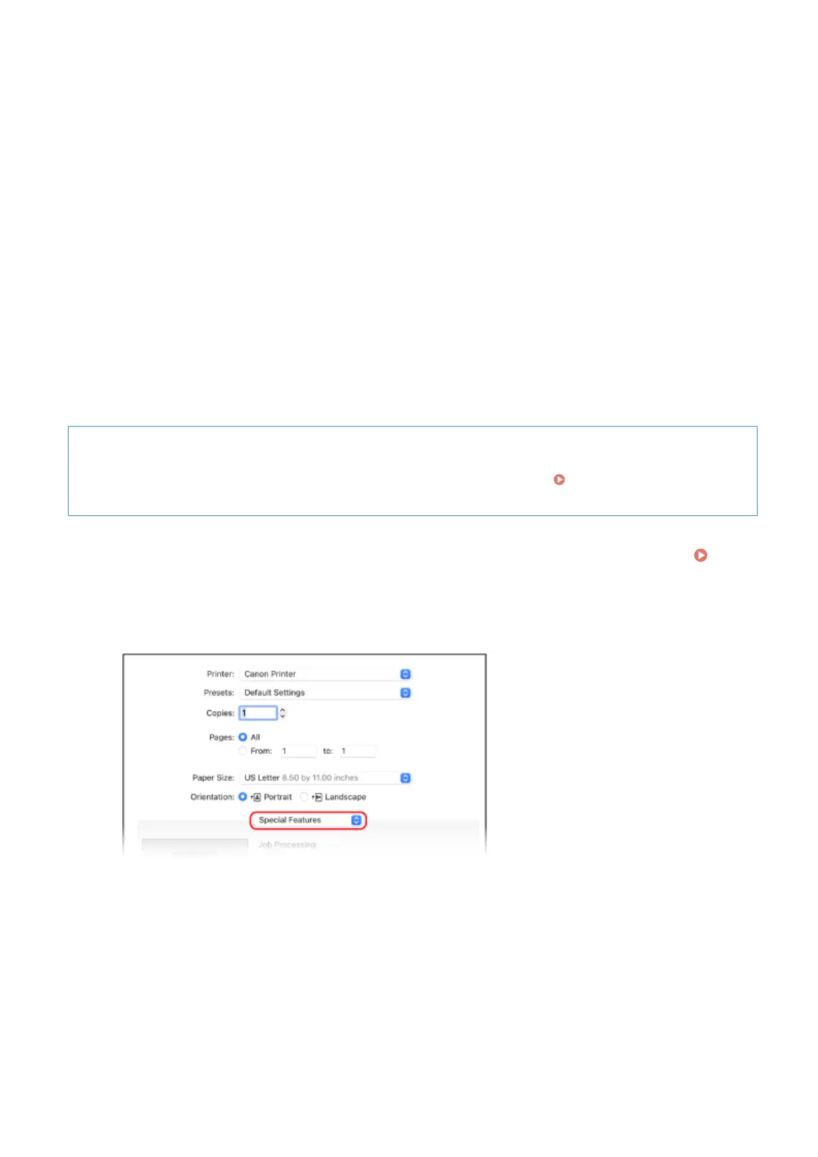 From the print options pop-up menu, select [Special Features].
