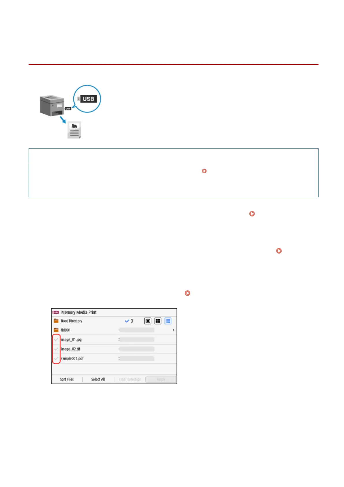 ● Congure the settings to print data from a USB memory device. Preparing to Print from a USB Memory